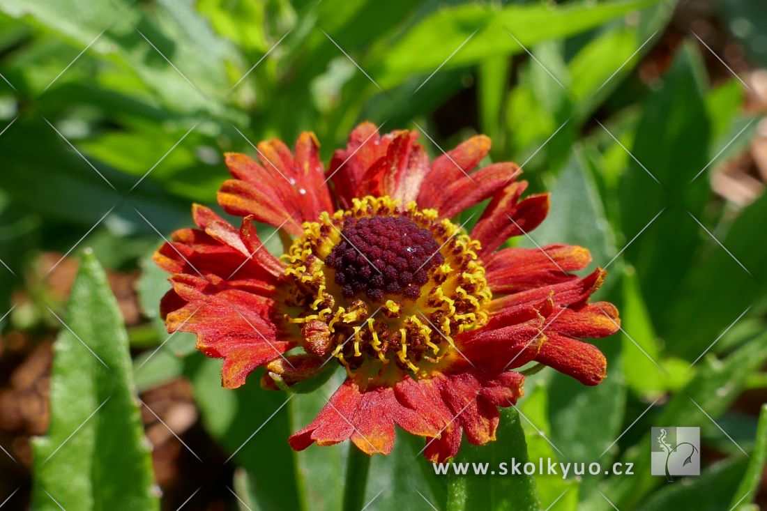 Novější, nízká, kompaktní odrůda s tmavě červenými květy. Helenium miluje dobře propustnou, avšak nevysychající půdu bohatou na živiny. Nejlépe kvete na plném slunci, ale snese i velmi lehký polostín. Při plošné výsadbě použijeme 3-5 rostlin na 1 m2.